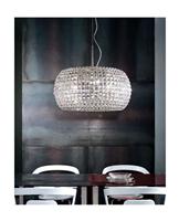 Lampada a sospensione (lampadario) della linea Andromeda di Marchetti Illuminazione con struttura in Nickel lucido e Cristallo. Il diffusore ha diametro di 65 centimetri ed un'altezza di 32cm ed e' ideale per salotti e sale da pranzo.