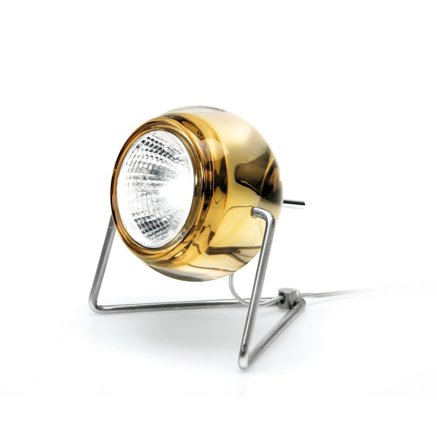 Lampada da tavolo della collezione Beluga di Fabbian disegnata da Marc Sadler con diffusori in cristallo al piombo 24% trasparenti o verniciati. La struttura metallica e' in cromo lucido. Disponibile in differenti colori ha la possibilita' di montare sia una lampadina dicroica che una fonte luminosa a LED.