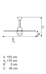 Ventilatore da soffitto ItalExport. Centottanta e' la risposta all'esigenza di ventilatori proporzionati per spazi di medie dimensioni: presenta un diametro complessivo di 180cm con pale realizzate in Alluminio o Perspex, una scelta stilistica che privilegia materiali leggeri, visivamente non invasivi e altamente performanti. Versione senza corpo illuminante. Telecomando non compreso, si consiglia di acquistarlo contemporaneamente al ventilatore. Versione con pale trasparenti.