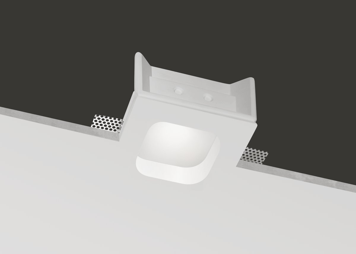 Focus incasso a scomparsa quadrato con angoli stondati, installazione a soffitto,per cartongesso laterizio. Fascio luminoso a 90