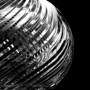 Lampada a sospensione (lampadario) della collezione Diamond et Swirl disegnato da Bridgewell Consulting Ltd con particolari metallici in cromo lucido e diffusore in cristallo al piombo 24%, molato a mano nel disegno Swirl. Disponibile con diffusore con d