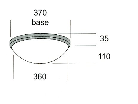 Lampada da soffitto (plafoniera) o da parete (applique) 340-23090 con diffusore in vetro soffiato opale triplex satinato con sistema di aggangio a baionetta. Base in policarbonato autoestinguente. Fascia in metallo cromato e guarnizione in silicone. Indice di protezione IP65. DIametro 36 centimetri.