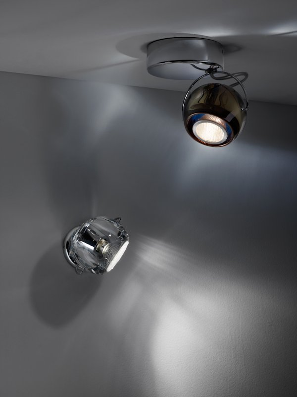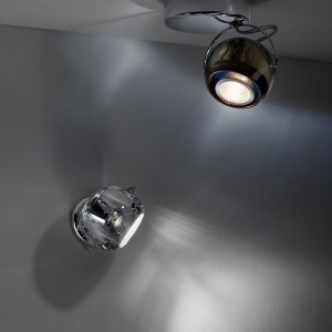 Lampada da parete (applique) o da soffitto (plafoniera) della collezione Beluga di Fabbian disegnata da Marc Sadler con diffusori in cristallo al piombo 24% trasparenti o verniciati. La struttura metallica e' in cromo lucido. Disponibile in differenti colori ha la possibilita' di montare sia una lampadina dicroica che una fonte luminosa a LED.