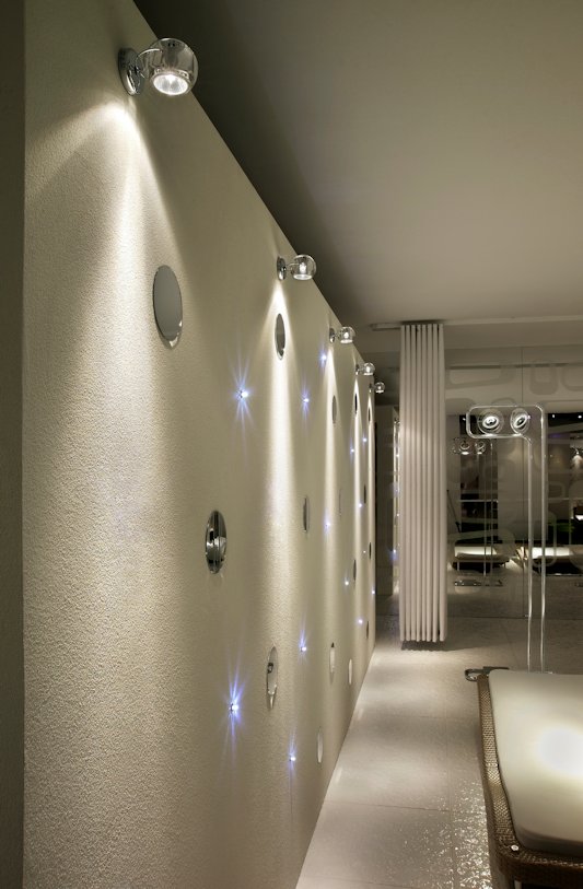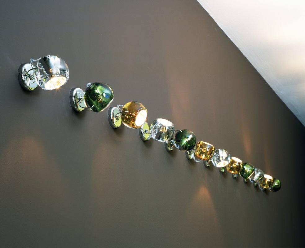 Lampada da parete (applique) o da soffitto (plafoniera) della collezione Beluga di Fabbian disegnata da Marc Sadler con diffusori in cristallo al piombo 24% trasparenti o verniciati. La struttura metallica e' in cromo lucido. Disponibile in differenti colori ha la possibilita' di montare sia una lampadina dicroica che una fonte luminosa a LED.