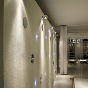 Lampada da parete (applique) o da soffitto (plafoniera) della collezione Beluga di Fabbian disegnata da Marc Sadler con diffusori in cristallo al piombo 24% trasparenti o verniciati. La struttura metallica e' in cromo lucido. Disponibile in differenti colori ha la possibilita' di montare sia una lampadina dicroica che una fonte luminosa a LED.