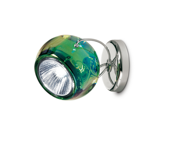 Lampada da parete (applique) o da soffitto (plafoniera) della collezione Beluga di Fabbian disegnata da Marc Sadler con diffusori in cristallo al piombo 24% trasparenti o verniciati. La struttura metallica e' in cromo lucido. Disponibile in differenti colori ha la possibilita' di montare sia una lampadina dicroica che una fonte luminosa a LED.