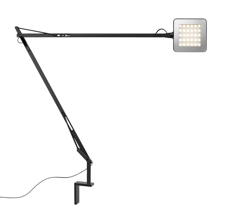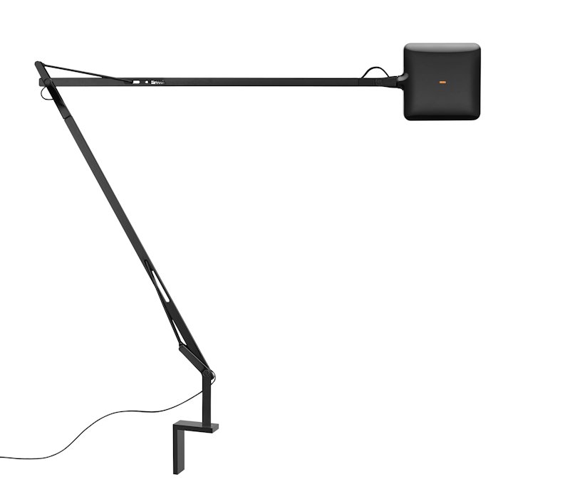 Lampada da tavolo disegnata da Antonio Citterio nel 2009 con doppio braccio a pantografo e testa orientabile. Corpo in lega di alluminio colato. Testa esterna in alluminio pressofuso con diffusore in metacrilato stampato ad iniezione. ATTACCO A PARETE in alluminio estruso lavorato a CNC. Struttura ottenuta da un tubolare quadrato in lega di alluminio estruso (12 x 12 mm) lavorato meccanicamente al fine di consentire l’alloggiamento e lo scorrimento al suo interno delle molle di compensazione in acciaio inox e dei pattini stampati ad iniezione in resina acetalica. I tiranti esterni sono in filo d’acciaio diametro 3 mm. Disponibile nelle finiture bianco, antracite, nero o cromo. L’interruttore ON/OFF è elettronico ed è dotato di funzionamento ottico alloggiato nella testa. Due possibilità di scelta: - IMPOSTAZIONI PERSONALI (interruttore arancio) Regola l’intensità della luce come preferisci. - GREEN MODE (interruttore verde) Ora Kelvin LED diventa Green, risparmiando sempre più energia grazie alla sua compensazione automatica della luce dell’ambiente.