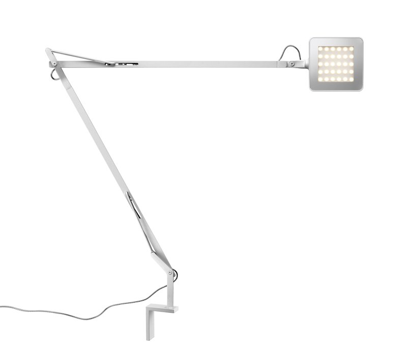 Lampada da tavolo disegnata da Antonio Citterio nel 2009 con doppio braccio a pantografo e testa orientabile. Corpo in lega di alluminio colato. Testa esterna in alluminio pressofuso con diffusore in metacrilato stampato ad iniezione. ATTACCO A PARETE in alluminio estruso lavorato a CNC. Struttura ottenuta da un tubolare quadrato in lega di alluminio estruso (12 x 12 mm) lavorato meccanicamente al fine di consentire l’alloggiamento e lo scorrimento al suo interno delle molle di compensazione in acciaio inox e dei pattini stampati ad iniezione in resina acetalica. I tiranti esterni sono in filo d’acciaio diametro 3 mm. Disponibile nelle finiture bianco, antracite, nero o cromo. L’interruttore ON/OFF è elettronico ed è dotato di funzionamento ottico alloggiato nella testa. Due possibilità di scelta: - IMPOSTAZIONI PERSONALI (interruttore arancio) Regola l’intensità della luce come preferisci. - GREEN MODE (interruttore verde) Ora Kelvin LED diventa Green, risparmiando sempre più energia grazie alla sua compensazione automatica della luce dell’ambiente.