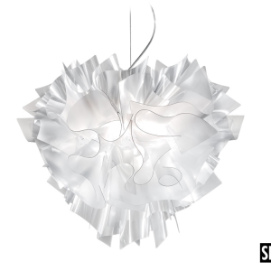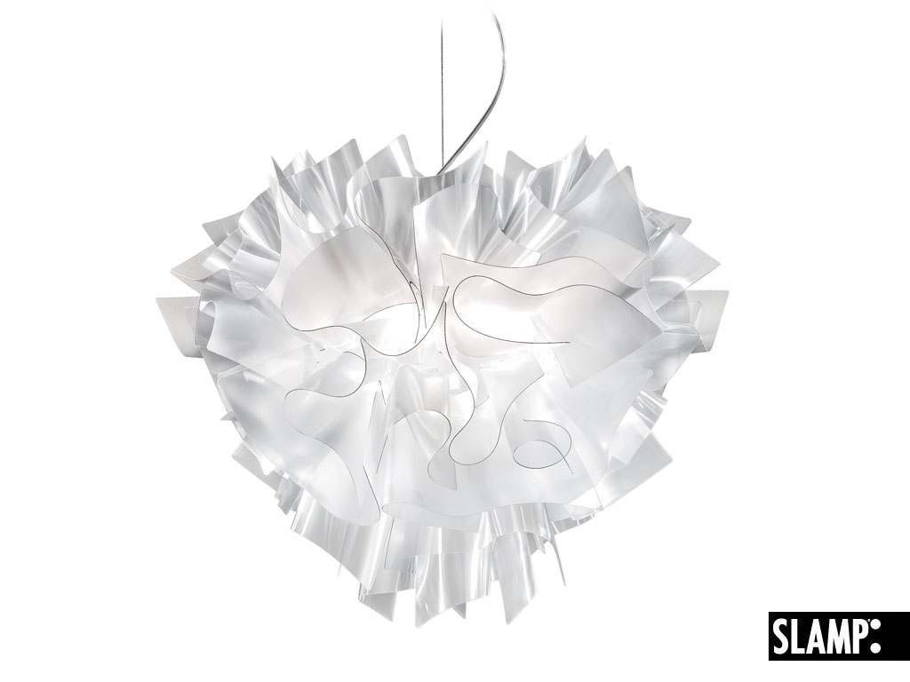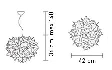 Lampada a sospensione disegnata da Adriano Rachele. Come un abito sartoriale, è allestita completamente a mano. Veste ed esalta morbidamente la luce, grazie alle suggestive velature di Opalflex. Il supporto magnetico, i tanti colori e le misure disponibili la rendono molto versatile. Nella versione Prisma, gli strati di Lentiflex filtrano la luce dando affascinanti riflessi. Dimensioni del corpo larghezza 42cm, altezza 36cm.