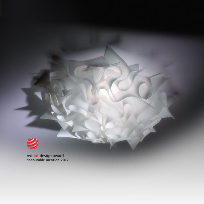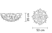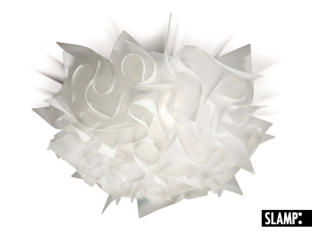 Lampada da parete e/o da soffitto disegnata da Adriano Rachele per Slamp. Come un abito sartoriale, è allestita completamente a mano. Veste ed esalta morbidamente la luce, grazie alle suggestive velature di Opalflex. Il supporto magnetico, i tanti colori e le misure disponibili la rendono molto versatile. Dimensioni 53x20Cm.