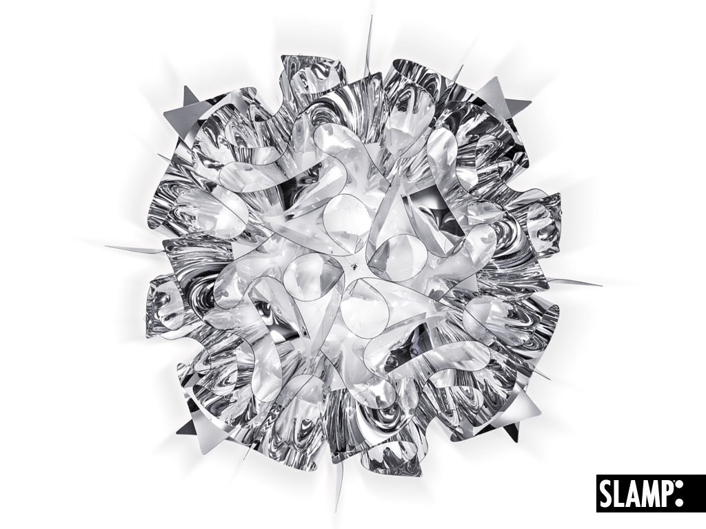 Lampada da parete e/o da soffitto disegnata da Adriano Rachele per Slamp. Come un abito sartoriale, è allestita completamente a mano. Veste ed esalta morbidamente la luce, grazie alle suggestive velature di Opalflex. Il supporto magnetico, i tanti colori e le misure disponibili la rendono molto versatile. Dimensioni 53x20Cm.