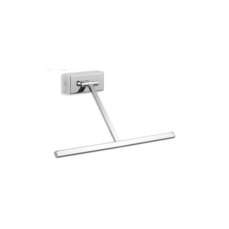 Lampada da parete orientabile ideale per quadri e illuminare dettagli. In metallo Cromo con una sorgente luminosa led ad alta efficienza da 5W. Larghezza 34cm