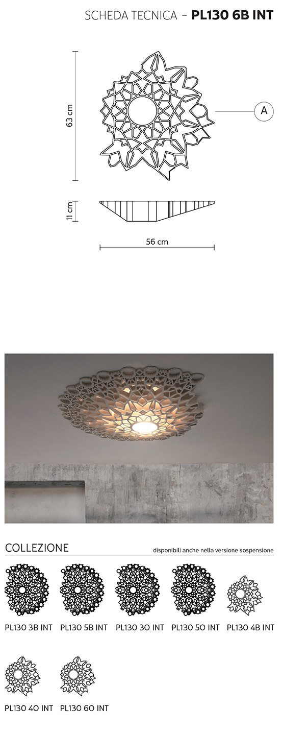 Notredame, lampada da parete o da soffitto di Karman. Un intreccio gotico di linee che arredano e irradiano di luce i vostri ambienti. Dal diametro di circa 56 centimetri, in tecnopolimero bianco con un LED frontale di 13W (1520 lumen) da 2700K ed una strip led per la retroilluminazione da 3W (280lumen).