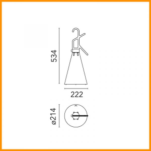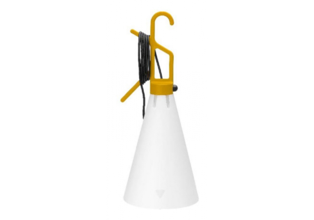 Apparecchio di illuminazione multiuso, versione da esterno. Diffusore conico in polipropilene opalino stampato ad iniezione. Gancio/maniglia, avente anche la funzione di avvolgicavo. Progettato da Konstantin Grcic. Lampadina esclusa