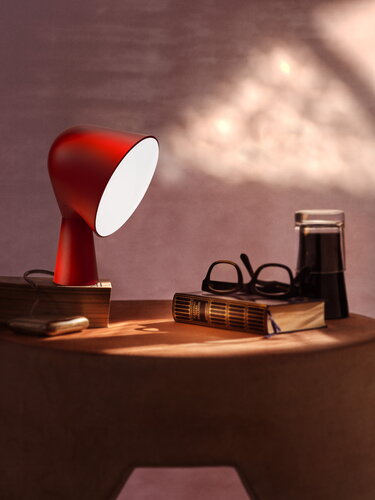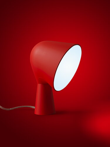 Lampada da tavolo con base in ABS e proiettore in policarbonato. Disponibile in sei colori, Binic è proposta come oggetto take away o idea regalo. ABS masterizzato e policarbonato nei colori bianco, rosa, verde acqua, blu, giallo, antracite e il nuovo rossoopaco