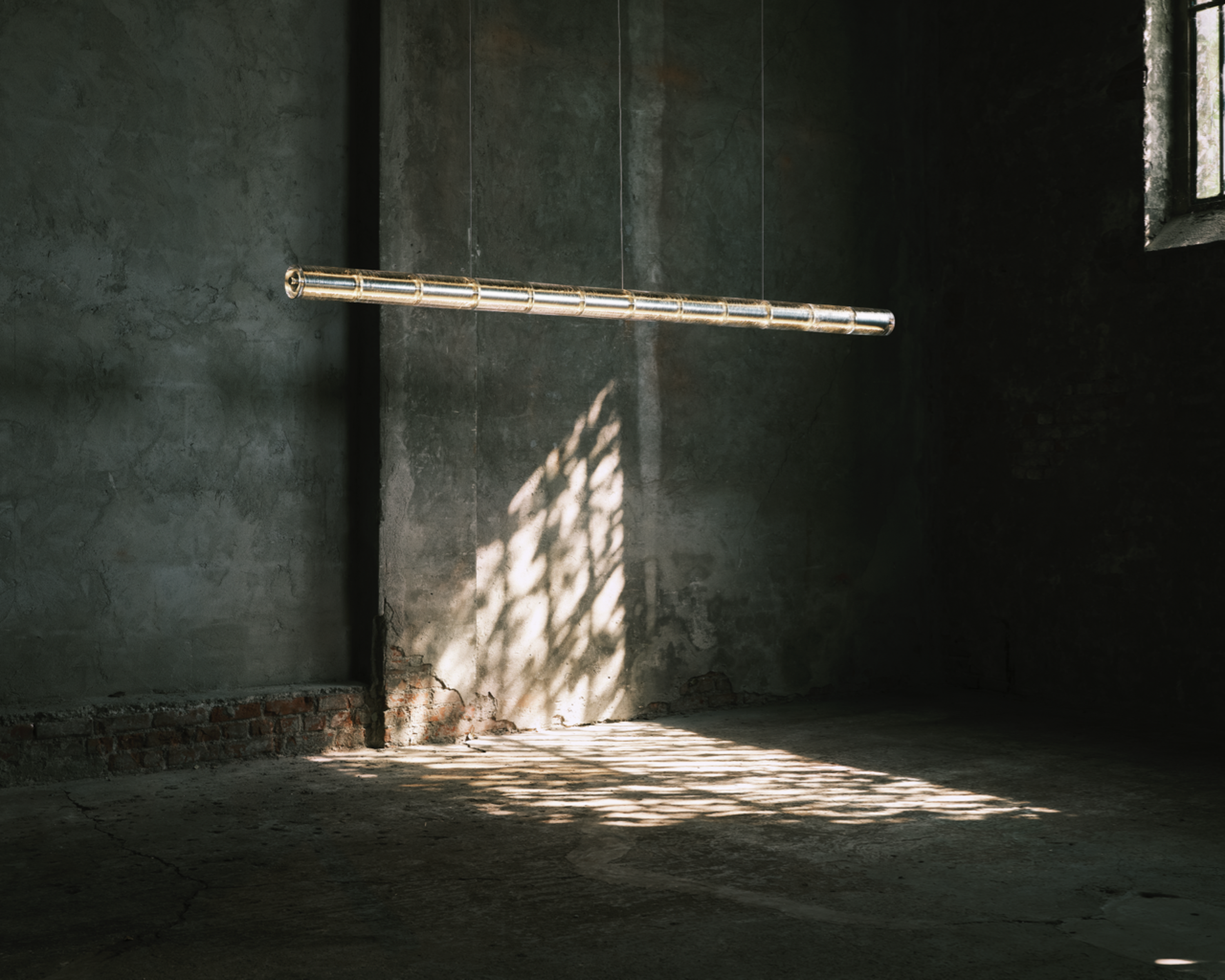 Lampada a sospensione, disegnata da Ronan & Erwan Bouroullec nel 2022, composta da moduli interconnessi in vetro che raggiungono una lunghezza di 1,66 m (S1) 2,07 m (S2) 2,49 m (S3) con cavo di alimentazione sospeso da 2,70 m.I moduli cilindrici in vetro trasparente sono il frutto di un processo artigianale che consiste nel versare il vetro in uno stampo rotante per ottenere una finitura esclusiva che rende unico ogni singolo pezzo. La struttura interna in alluminio estruso lucido è dotata di due moduli a LED lineari che emettono la luce direttamente e indirettamente verso il basso. In caso di manutenzione, i moduli possono essere facilmente rimossi e sostituiti.L'unità di alimentazione e il dimmer Dali si trovano all'interno del rosone, mentre il pulsante touch di controllo, posizionato a un'estremità del prodotto, consente il controllo della lampada in tre modalità diverse.Opzioni di controllo disponibili: TOUCH_ Controllo diretto attraverso il pulsante touch della lampada. Questa opzione consente la dimmerazione e la regolazione dell'intensità della luce sia verso l'alto che verso il basso (singolarmente o in modo combinato) dal 10% al 100%.PUSH&TOUCH_Comando di accensione e spegnimento da remoto attraverso il pulsante e dimmerazione e regolazione dell'intensità della luce sia verso l'alto che verso il basso (singolarmente o in modo combinato) dal 10% al 100% attraverso il pulsante touch integrato nella lampada.DALI&TOUCH_Comando di accensione e spegnimento da remoto attraverso DALI DT6 e dimmerazione e regolazione dell'intensità della luce sia verso l'alto che verso il basso (singolarmente o in modo combinato) dal 10% al 100% attraverso il pulsante touch integrato nella lampada.