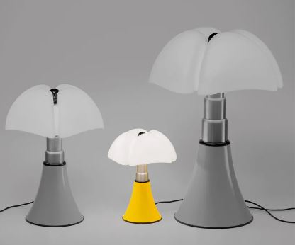 La firma di Gae Aulenti, che su Pipistrello classica è incisa sottilmente sul telescopio, si fa più marcata sulla targhetta nera lucida applicata alla base. Un valore questo, che emerge con più forza, come forte è il carattere di Pipistrello Pop.
