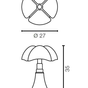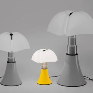 MiniPipistrello Pop è una lampada da tavolo con base in acciaio e paralume in metacrilato, parte dell'omonima collezione.