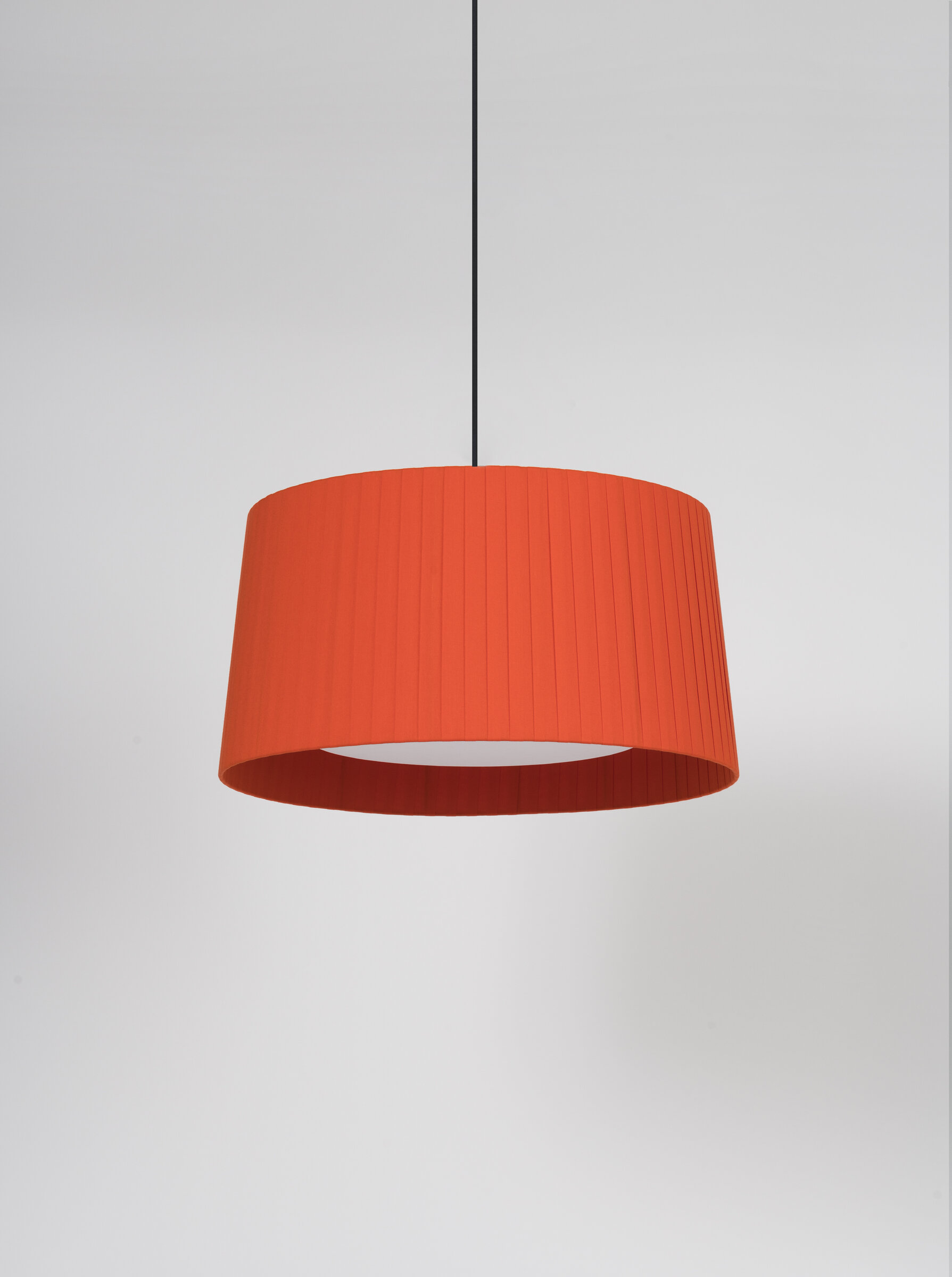 Progettate per volumi intermedi e per gli spazi domestici, GT5 è una lampada a sospensione con paralumi a nastro la cui semplice presenza conferisce carattere a ogni ambiente. Colore Rosso