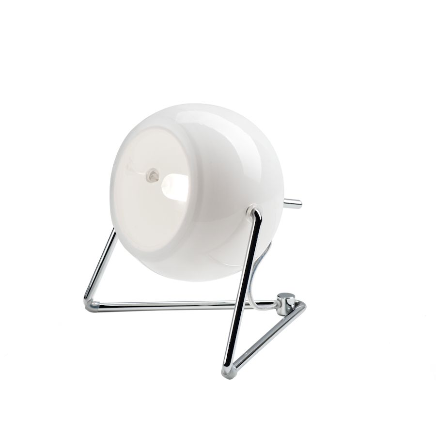 Lampada da tavolo della collezione Beluga di Fabbian disegnata da Marc Sadler con diffusori orientabili in cristallo bianco lucido e struttura metallica in cromo lucido. Puo' montare sia una lampadina dicroica che una fonte luminosa a LED.