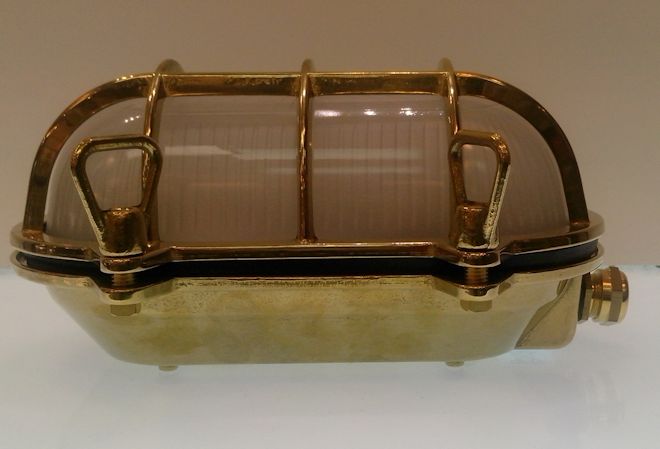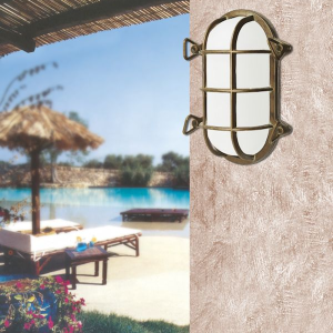 lampada da parete (plafoniera) della collezione Ocean in ottone con vetro opale . Lampada adatta sia ad uso interno che ad uso esterno avendo una classe di protezione IP 44